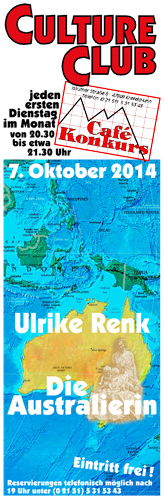 Lesung im Culture Club am 7. Oktober 2014, 20.30 bis 21.30 Uhr Ulrike Renk liest aus "Die Australierin", ein historischer Roman. Von Hamburg nach Sydney. Als Tochter eines Werftbesitzers wächst Emilia in Hamburg auf. Sie soll eine gute Partie heiraten, aber nicht den Mann, in den sie sich verliebt hat. Carl Gotthold Lessing ist der Großneffe des berühmten Dichters. Er hat ein Kapitänspatent erworben und sich Geld geliehen, um ein Schiff zu bauen. Er will Emilia heiraten, doch ihre Familie ist strikt gegen diese Verbindung. Die beiden beginnen, nachdem Lessing von seiner ersten großen Fahrt zurückgekehrt ist, eine Affäre. Als ein Hausmädchen sie verrät, kommt es zum Bruch. Emilia beschließt, mit ihm zu reisen. In Südamerika kommt ihr erstes Kind zur Welt, in Hamburg das zweite. Doch sie haben ein anderes Ziel: Australien. Die spannende Geschichte einer Auswanderung, die auf wahren Begebenheiten beruht. Ulrike Renk, 1967 in Detmold geboren, aufgewachsen in Dortmund, Studienaufenthalt in den Vereinigten Staaten, Anglistikstudium, dazu Literaturwissenschaften und Soziologie in Aachen, Mutter von vier Kindern, Schriftstellerin in Krefeld. Broschiert: 544 Seiten